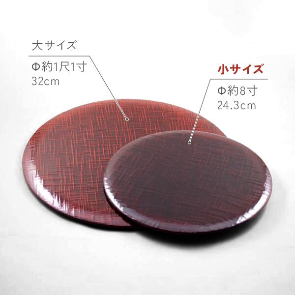 片面が布目模様、もう片面が黒塗で仕上がった円盆です。