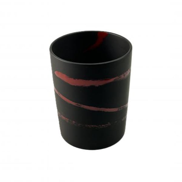 このカップは輪島塗の伝統技法をそのままに 最後の仕上げの上塗りで上塗り師がワッサしてみたものです。たっぷりの上塗り漆で一刷毛描いてみました。