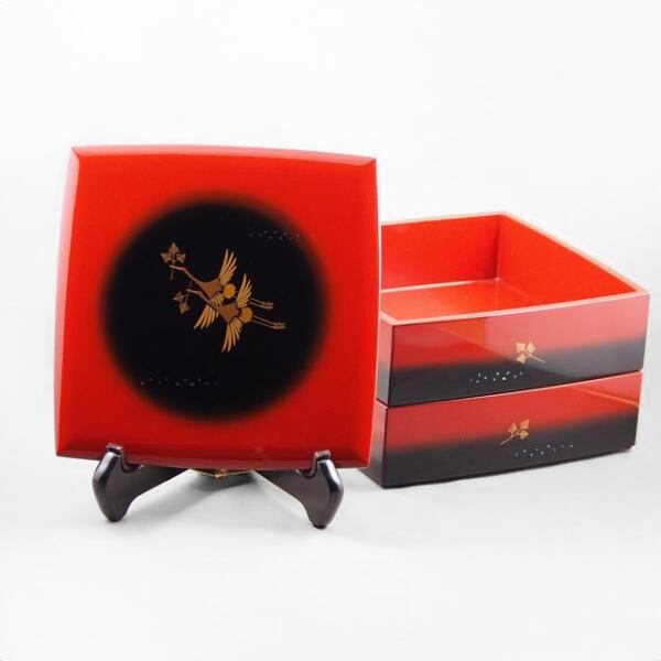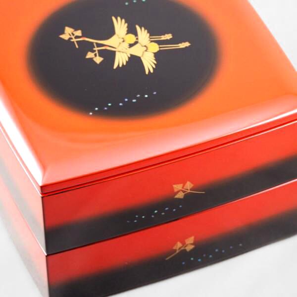 輪島塗二段重 ぼかし塗 「松喰鶴」蒔絵