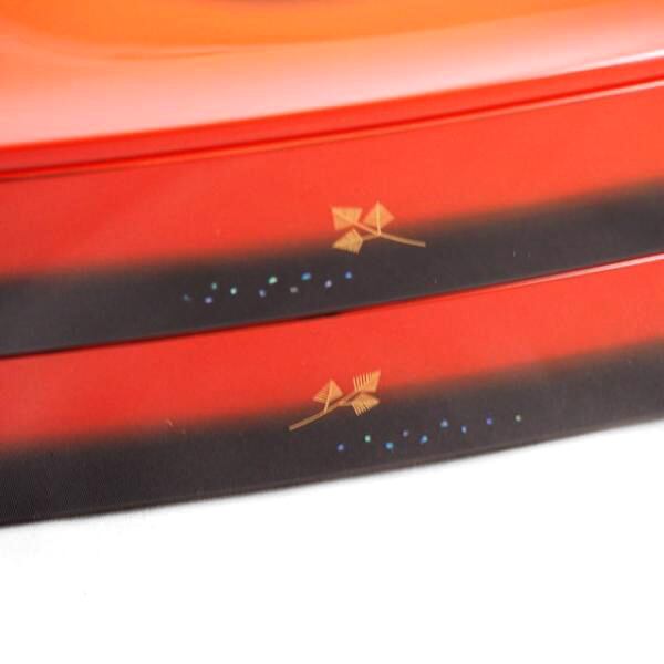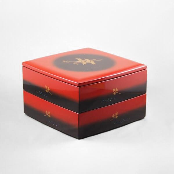 黒と朱のグラデーションで仕上げたぼかし塗の二段重です。