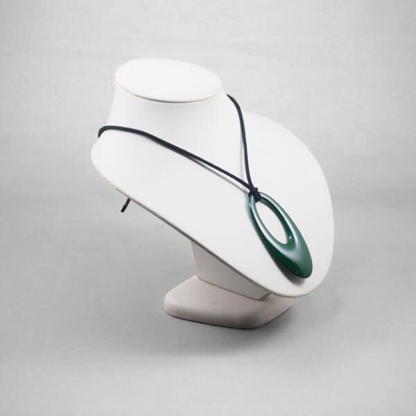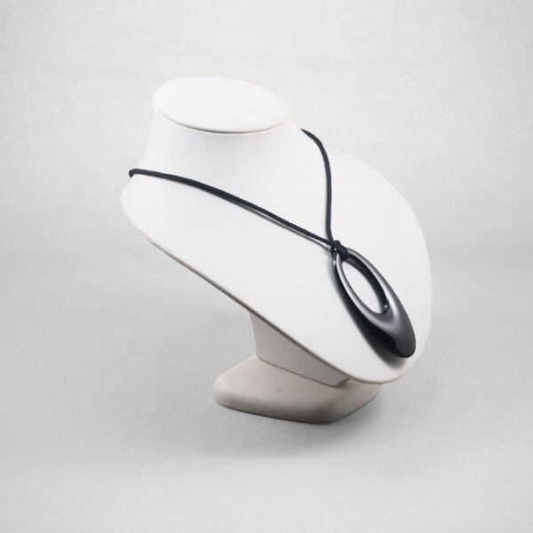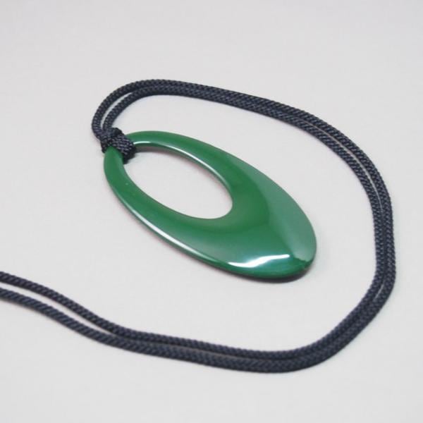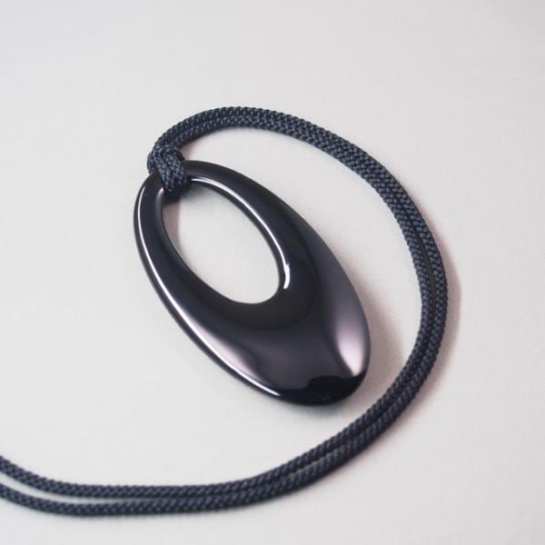 木製のペンダントに輪島塗を施し、呂色という