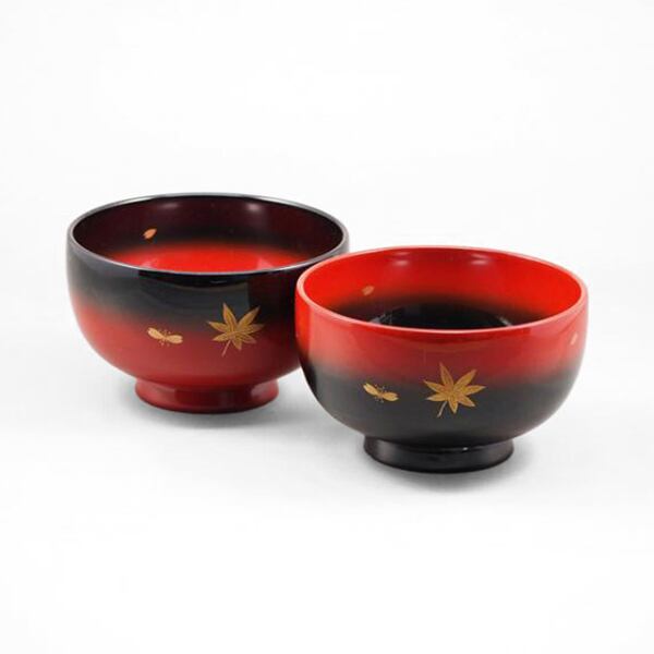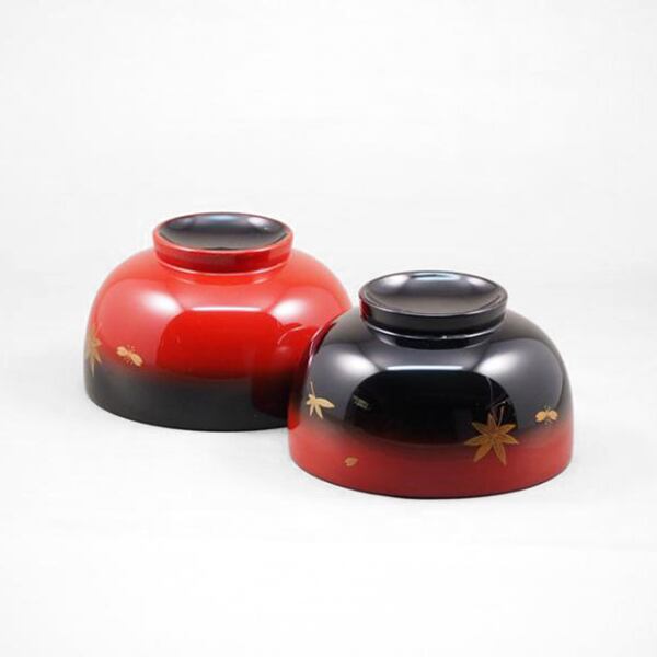 桜の花びらと紅葉の葉が舞う様子をイメージした蒔絵が施されています。